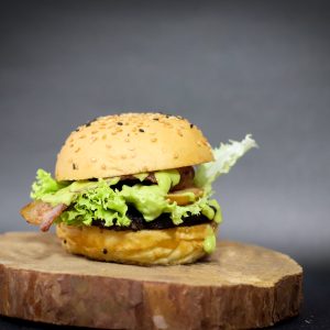 Pan Brioche de 50grs, carne de res 90 grs, lechuga, tomate, cebolla encurtida, tocineta y salsas de la casa. En el vibrante universo de la programación,